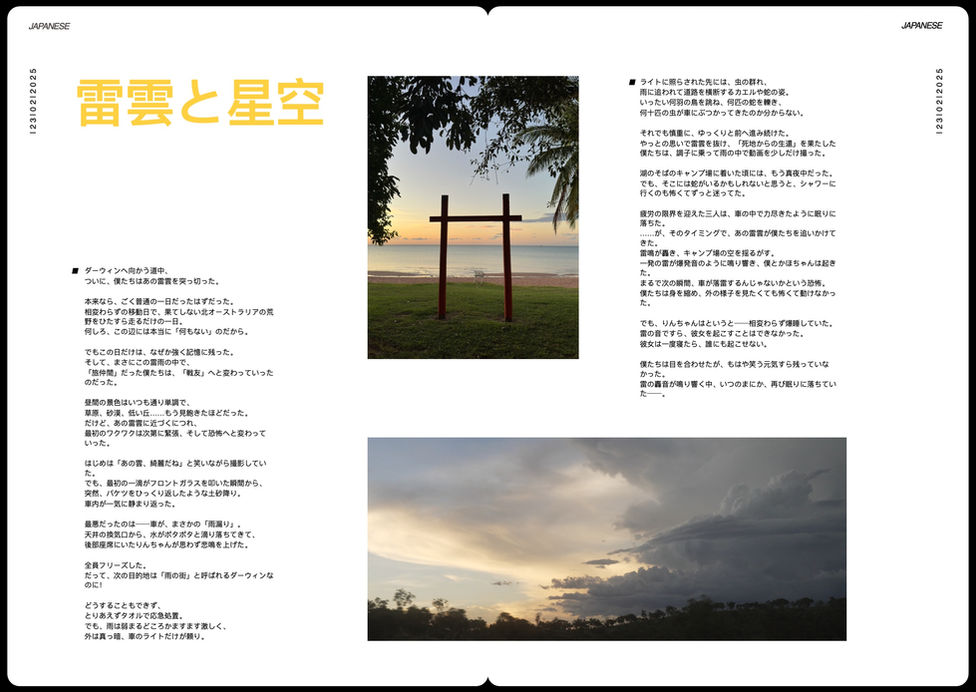 構想、執筆、デザイン、レイアウト、翻訳、記録、撮影、編集――すべて僕が主に担当しました。